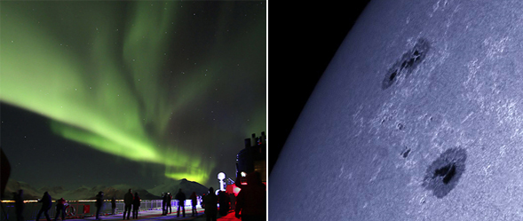 "Nordlich + Sterne zur Nordlichtbeobachtung an Bord von Hurtigrutenschiffen.