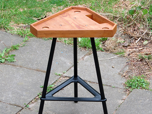besteht aus einem Stahlrohrgestell mit aufgesetzter Holzplatte, die ein kleines