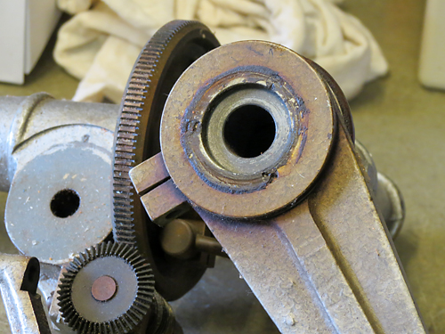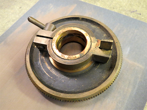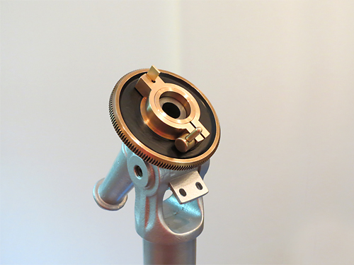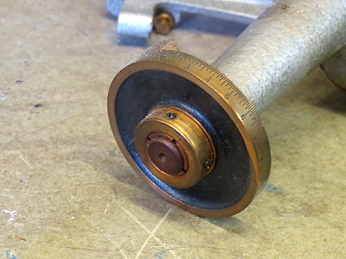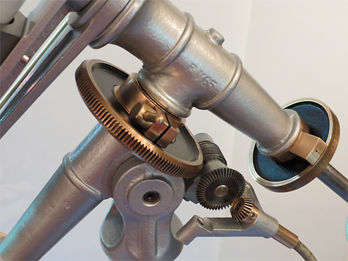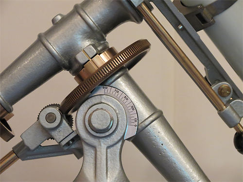 | Deklinationsachse mit Klemmung, Teilkreis und Nonius |