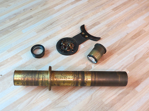 wurde das kleine Teleskop mit seiner Montierung Stück für Stück