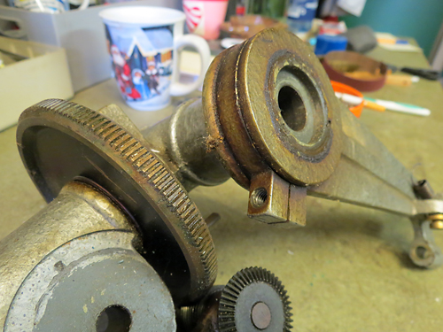 | Kegelrad und Schnecke für die Handnachführung |