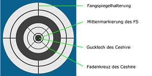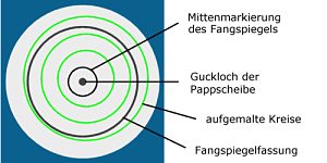 Man sieht nur den Fangspiegel mit seiner Mittenmarkierung und im