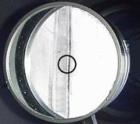sich eine ca. 5mm im Durchmesser messende Lochblende, mit der man von hinten in