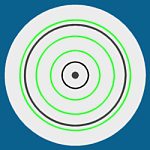 Kreismarkierungen der Pappscheibe (hier grün) exzentrisch um den