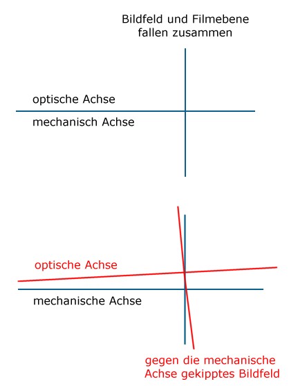 Bildfeld rechtwinklig zur mechanischen- und optischen Achse und damit zum zum