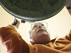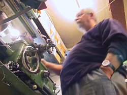 die Drehmaschine ein (links). Dann fängt man an zu drehen (midde) und