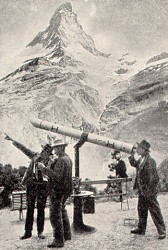 die Einweihung fon unsa Aussichtsfernrohr in den Alpen form Matterhorn. Man
