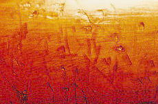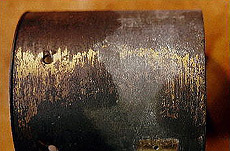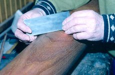 Schabemesser solange behandelt, bis die Lackschicht und alle Druckstellen