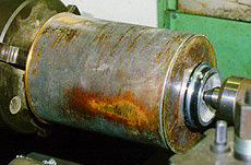 mattschwarzem Lack bei ständiger Drehung des Tubus auf der Rollenauflage -