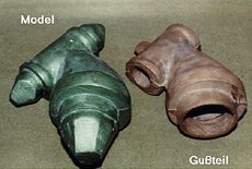 dar. Zuerst wurde ein Polblock nach einem Holzmodell aus Bronze