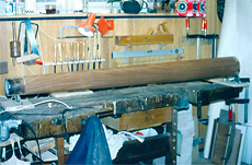 Arbeitsraum von einem erfahrenen Tischler mit einem speziellen Bootslack und