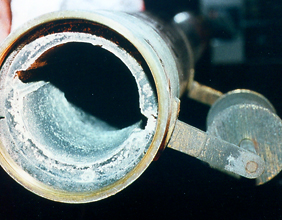 einen Stab verlängert war, alle losen Reste der Innenlackierung und