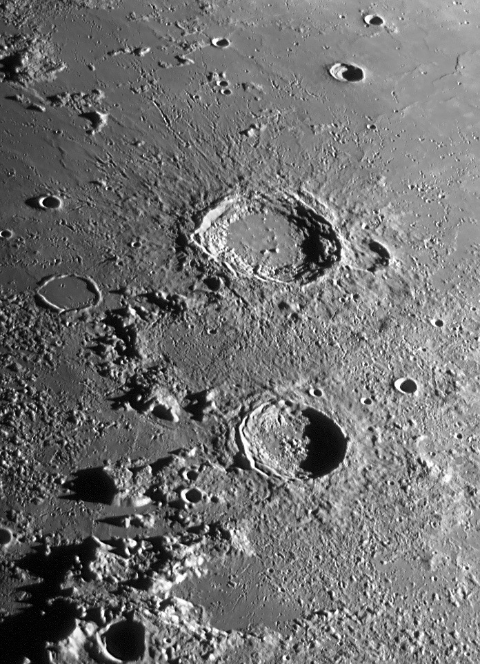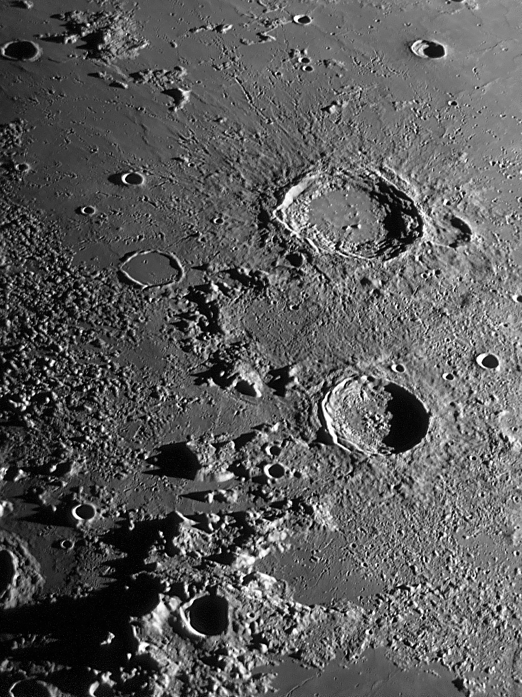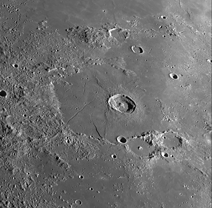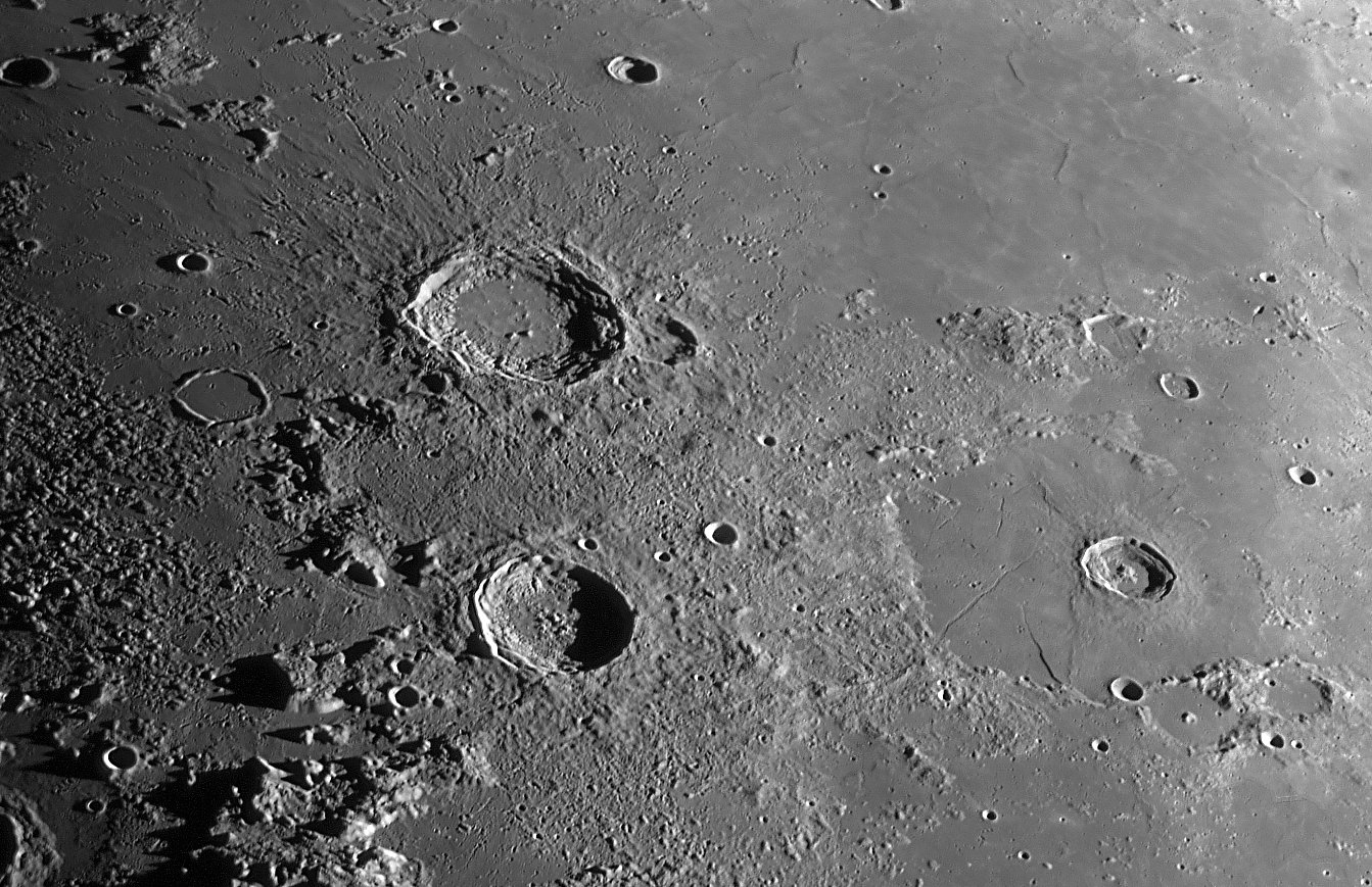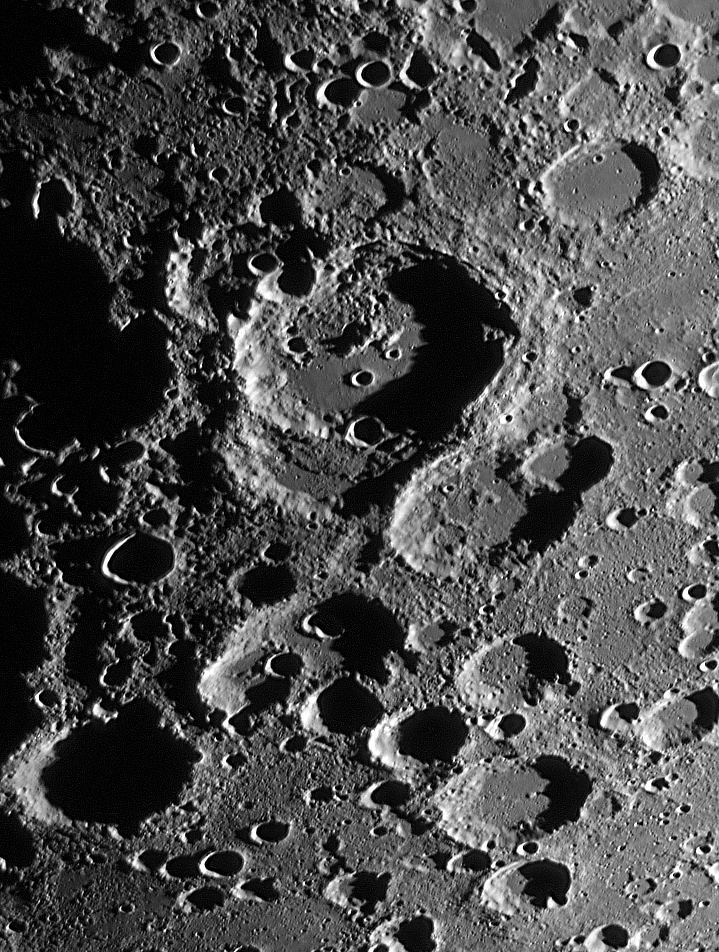 Bild mit sehr hohem Kontrast bearbeitet, Rillensystem im Krater