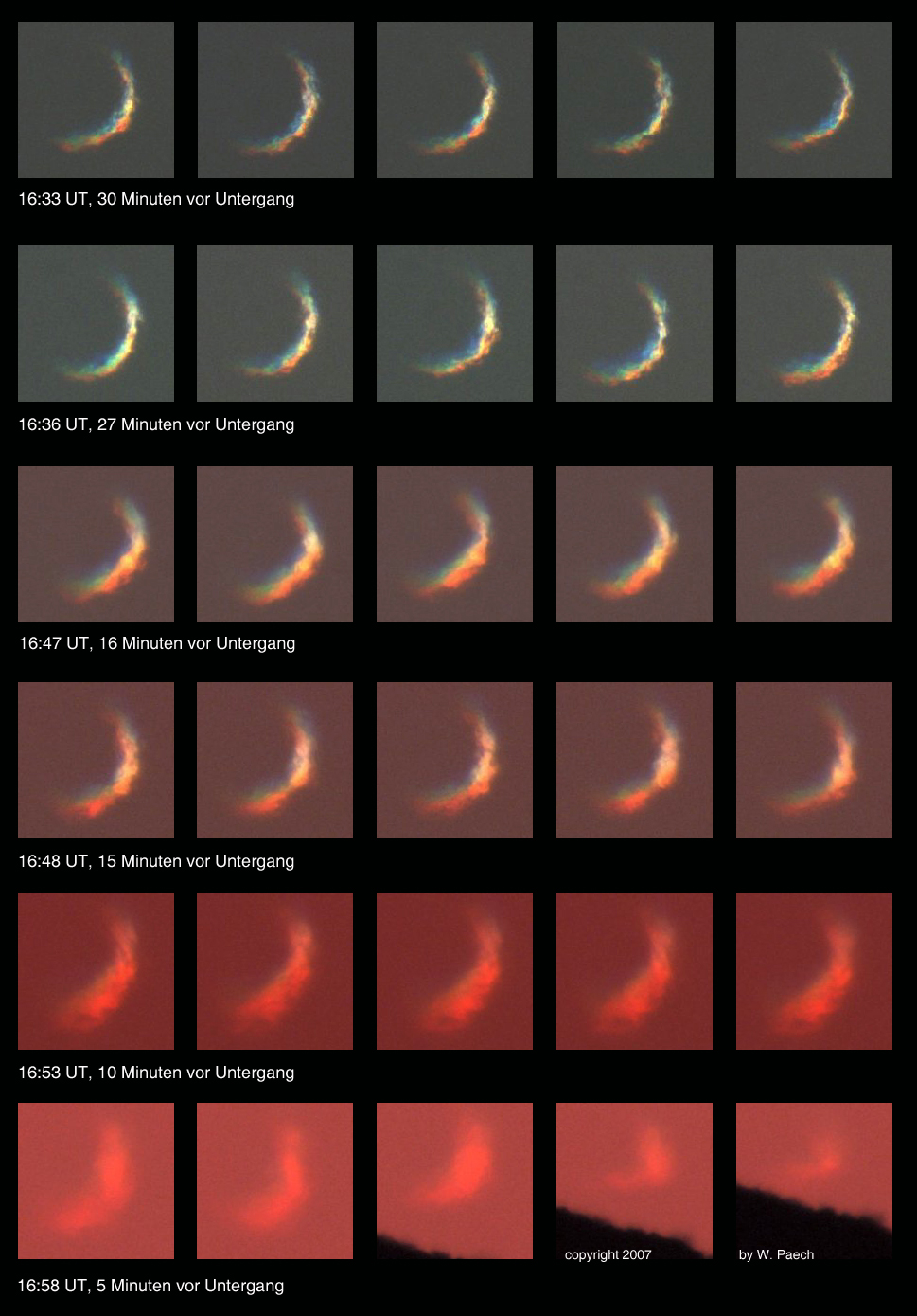 Das Bild links zeigt Einzelbilder der Venus kurz vor dem Untergang