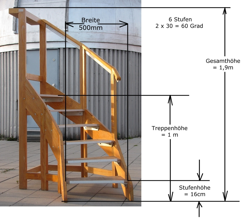 ca. 16cm. Treppenhöhe ca. 1m, insgesamt ca. 1.9m |