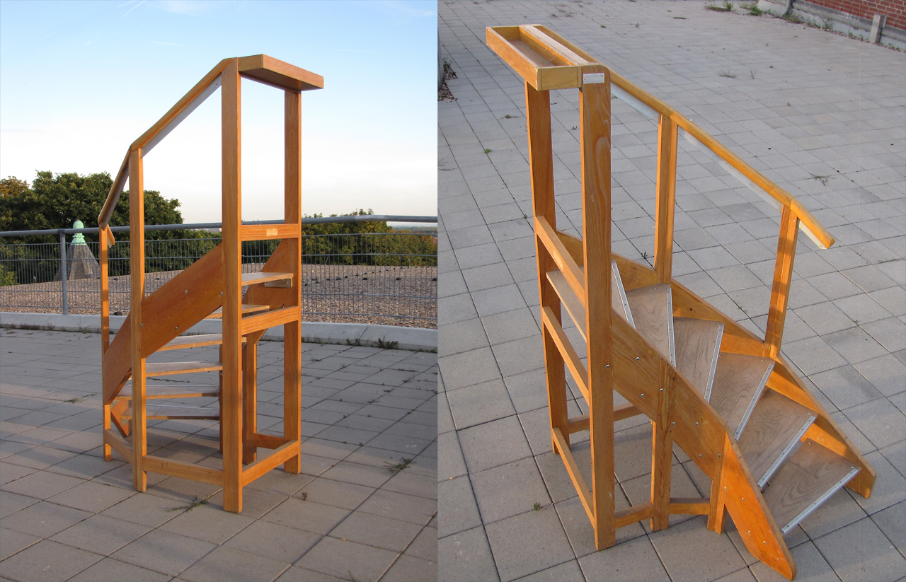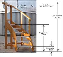 Stufen, zweimal um 30 Grad abgeknickt, Stufenbreite ca. 50cm, Stufenhöhe