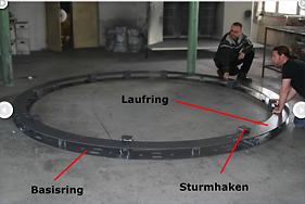 Kuppel. Dieser Basisring wird mit dem Kuppelunterbau fest verschraubt.