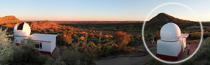 Danach erfolgten Restarbeiten in der Kuppel wie z.B. die Elektroinstallation. Dann folgte der Aufbau der Säule in der Kuppel, füllen der Säule mit feinem Quarzsand, Befestigen der Säule auf dem Instrumentenpfeiler und schließlich Montage des Teleskops von Tobias, Franz, Claus und mir. Die ersten Testbeobachtungen wurden am 5.5. durchgeführt. Die Plattform für die transportablen Teleskope wurde vom 16.5. bis zum 19.5. gegossen und die Säule für die Montierung aufgebaut. Die komplette Anlage wurde offiziell am 4.5.2013 in Anwesenheit der Lodgebesitzer eröffnet |
