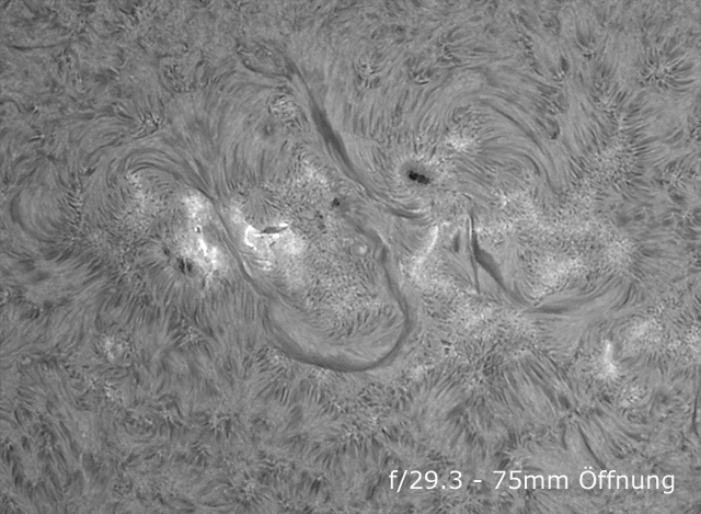 zeigt dass man - zumindest in der fotografischen H-alpha Beobachtung - den