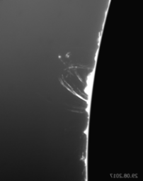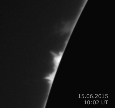 Protuberanz am 6. Mai 2015 mit Veränderungen innerhalb nur 8 Minuten und