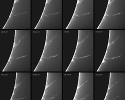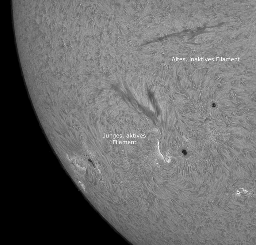 inaktives (oben)- und junges aktives Filament rechts: Zeitreihe eines aktiven Surge Filaments am 20.