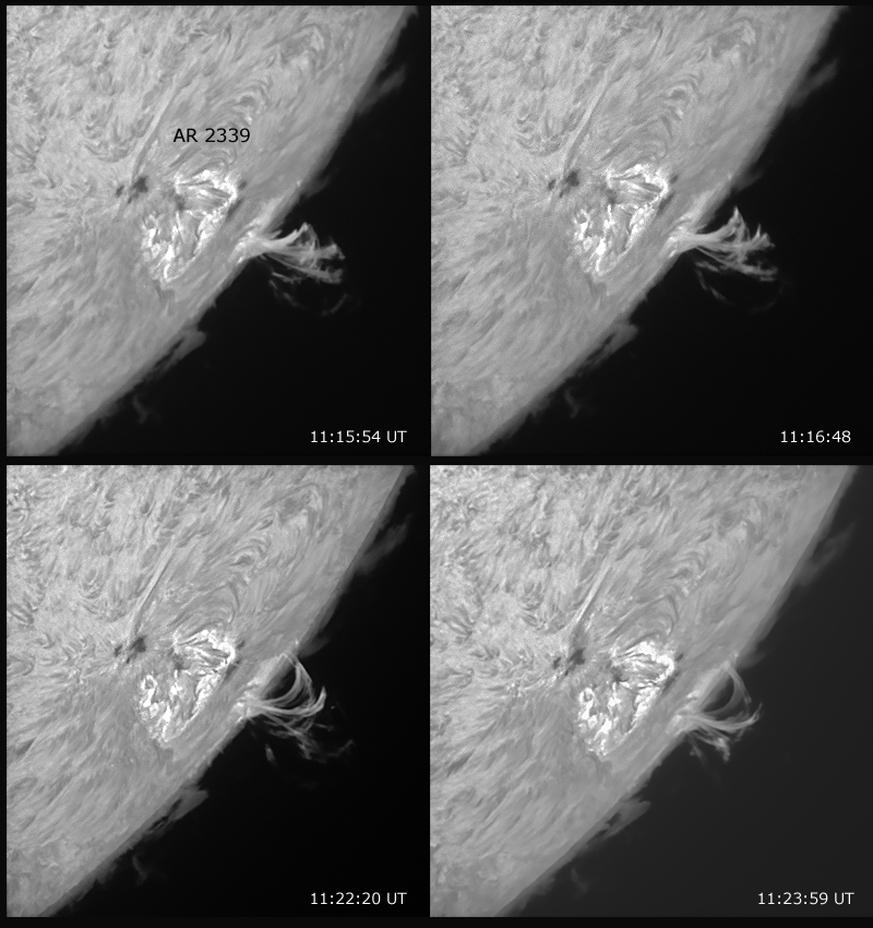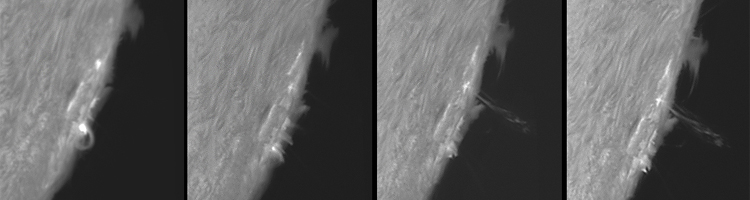 zeigt die Entstehung eines Surge Filaments zeigt den Helligkeitsanstieg eines