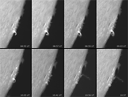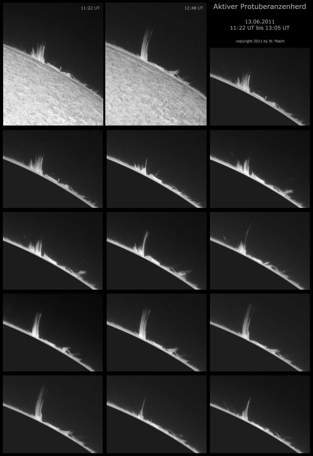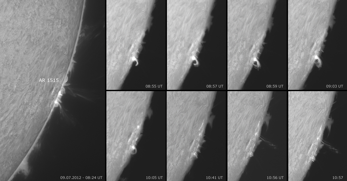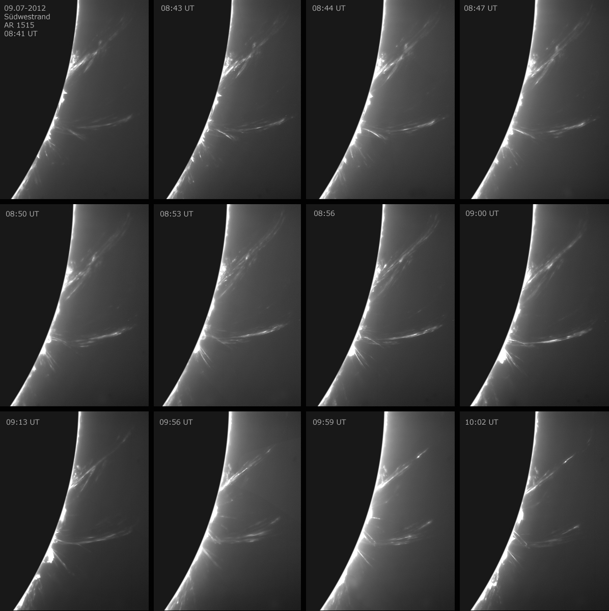 links: Zeitreihe einer aktiven Protuberanz am 9.7.2012
