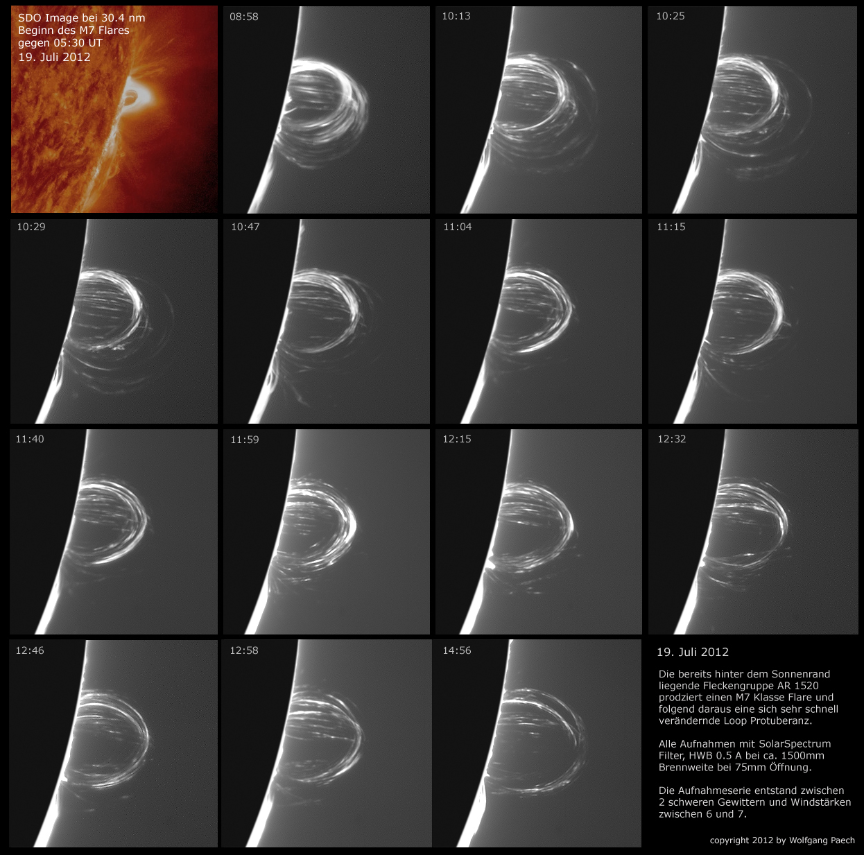Zeitreihe einer Post Flare loop Protuberanz am 19. Juli 2012 |