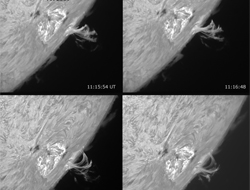 zwischen 8:41 und 10:02 UT des Aktivitätsgebiet AR 1515, mitte: Zeitreihe einer aktiven Protuberanz am 5.5.2011
