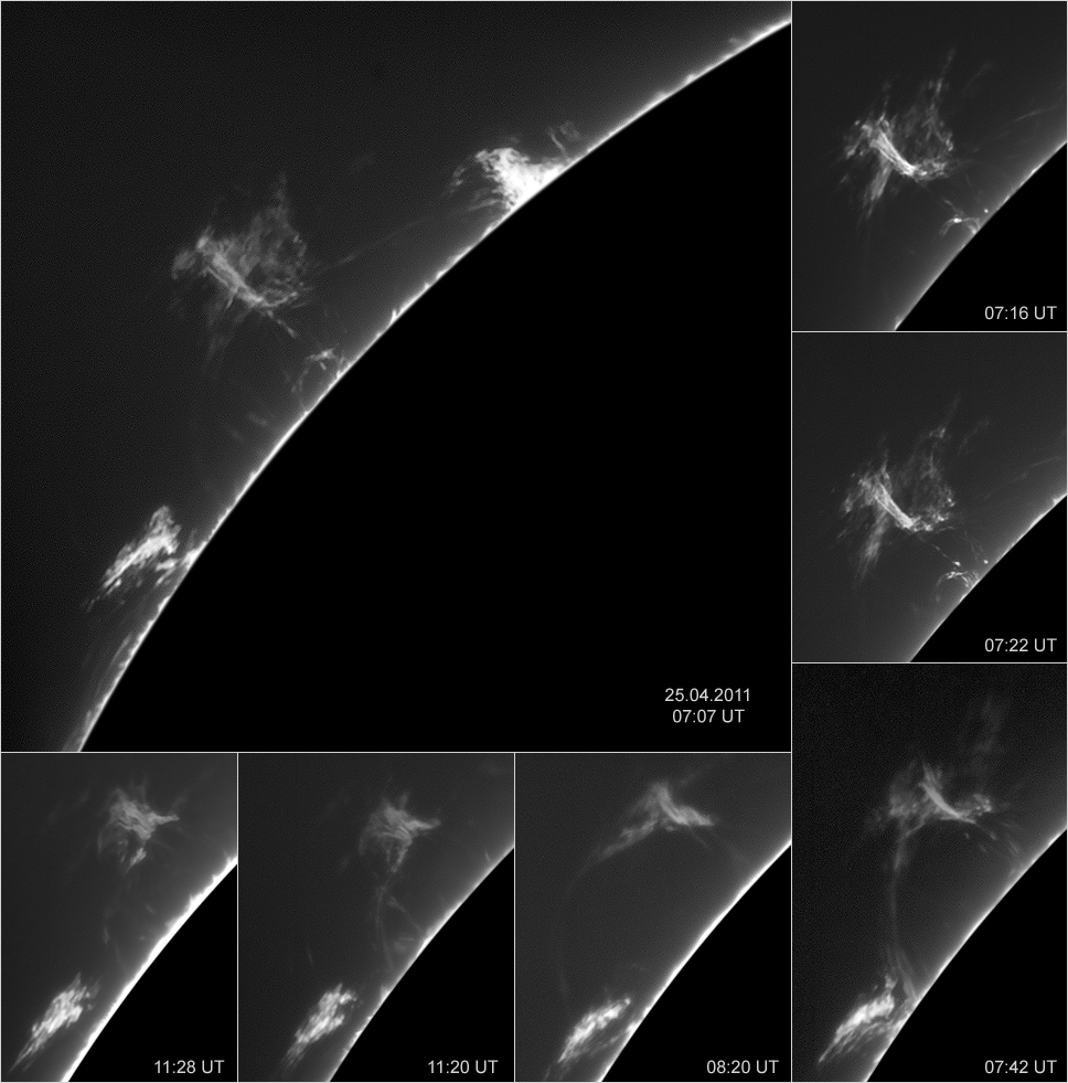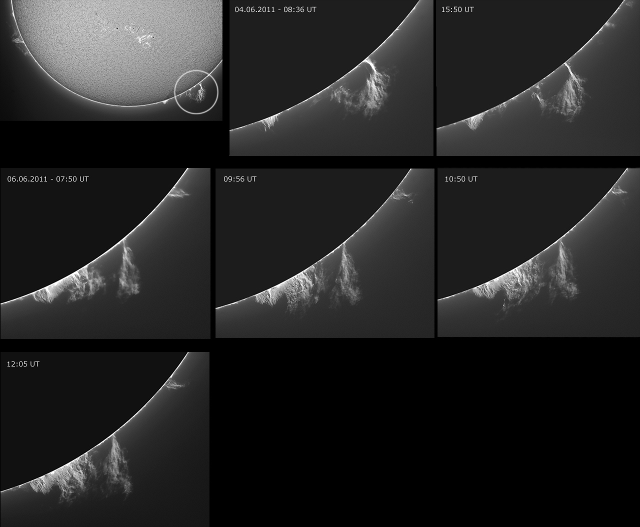links: Zeitreihe einer stationäre Protuberanz am 4.