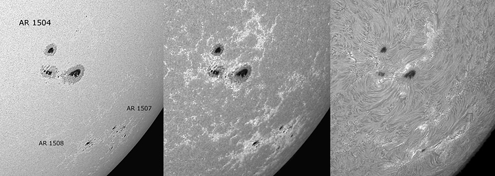 links nach rechts: verschiedene Umbra- und Penumbra Lichtbrücken in einer