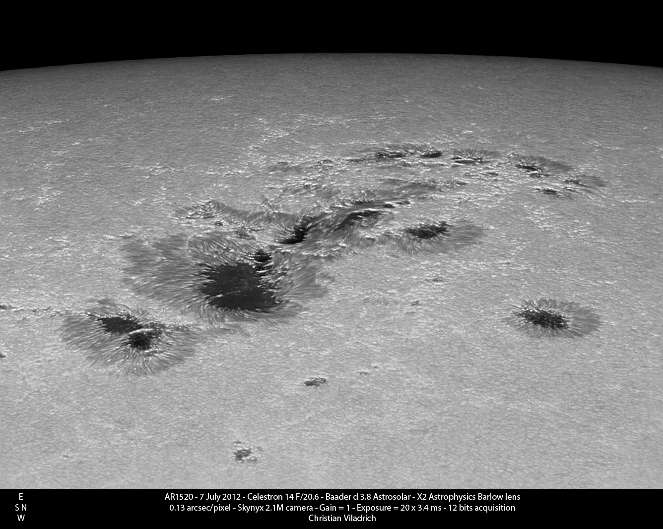 Baader SolarContinuum Filter zur Kontrastverstärkung eingesetzt. Die