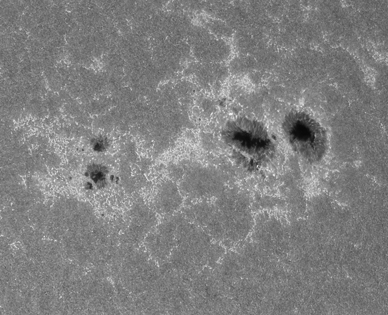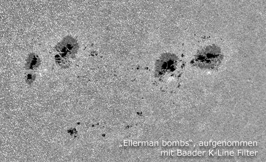 rechts: Supergranulationszellen, Bright Ring und K-Grains. Filerung links Baader K-Line, mitte und rechts mit Lunt BF
