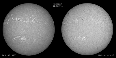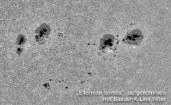 blauen Flügel der H-alpha Linie sichtbar, seltener in der CaK-II Linie.