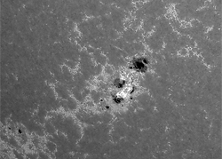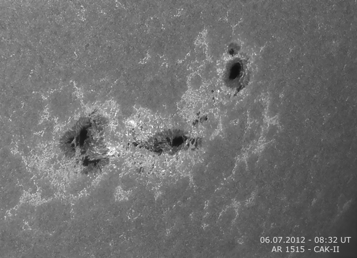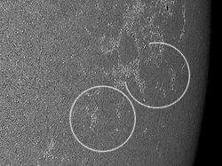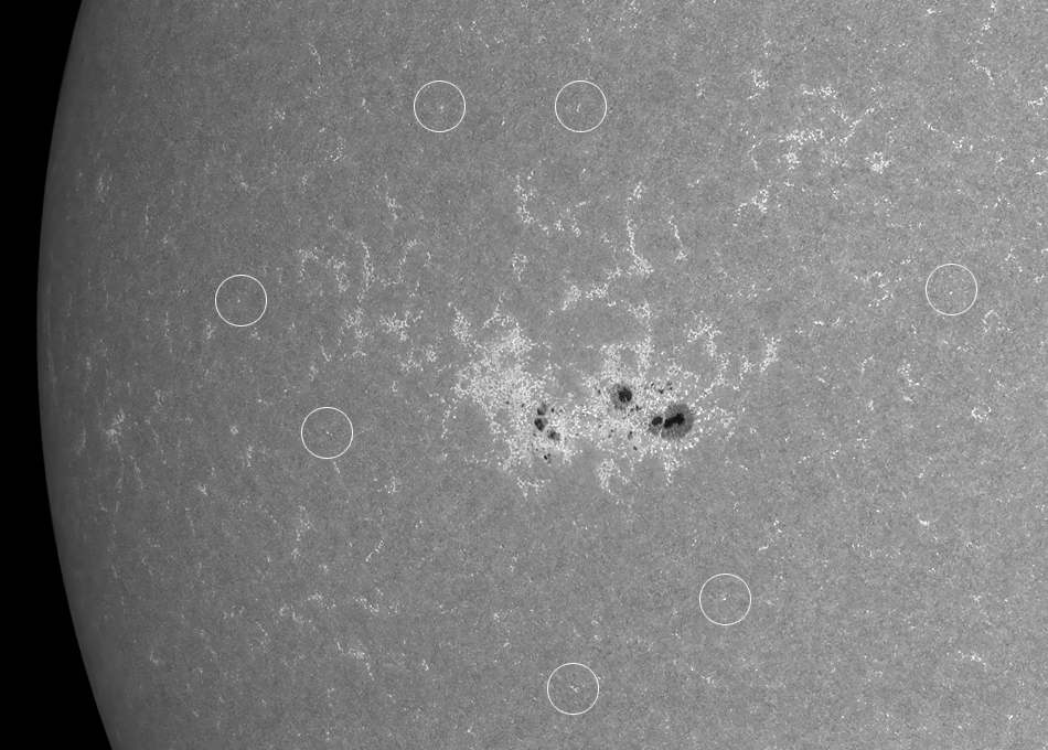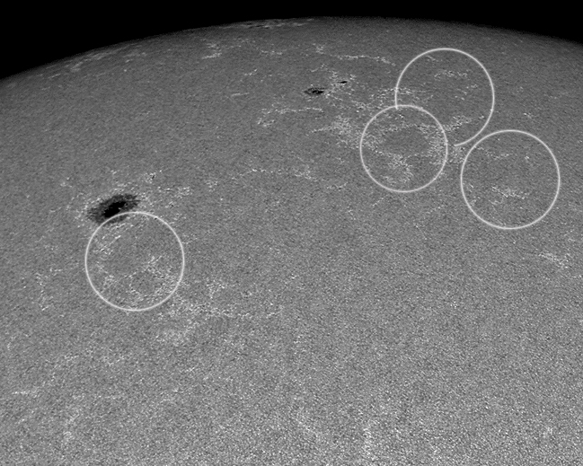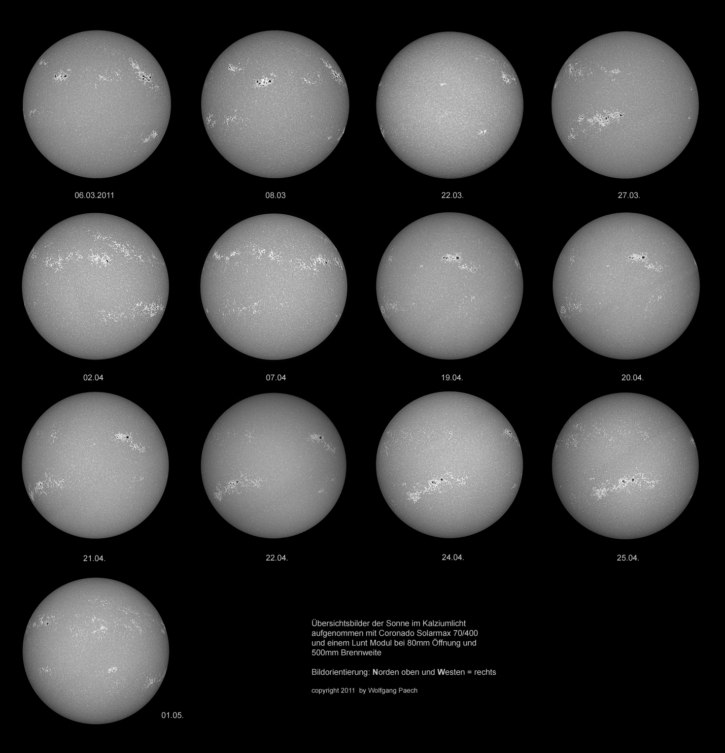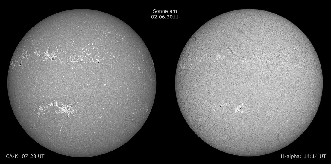 aufgenommen und zeigen chromosphärische Fackelgebiete in höherer