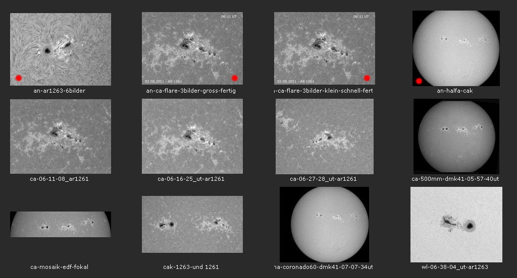 Sonnenbeobachtungen in drei engen Spektralbereichen "Best of" aus dem Jahr 2011 des 24. Sonnenzyklus |