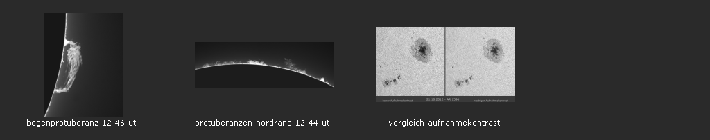 Sonnenbeobachtungen in drei engen Spektralbereichen "Best of" aus dem Jahr 2012 des 24. Sonnenzyklus |