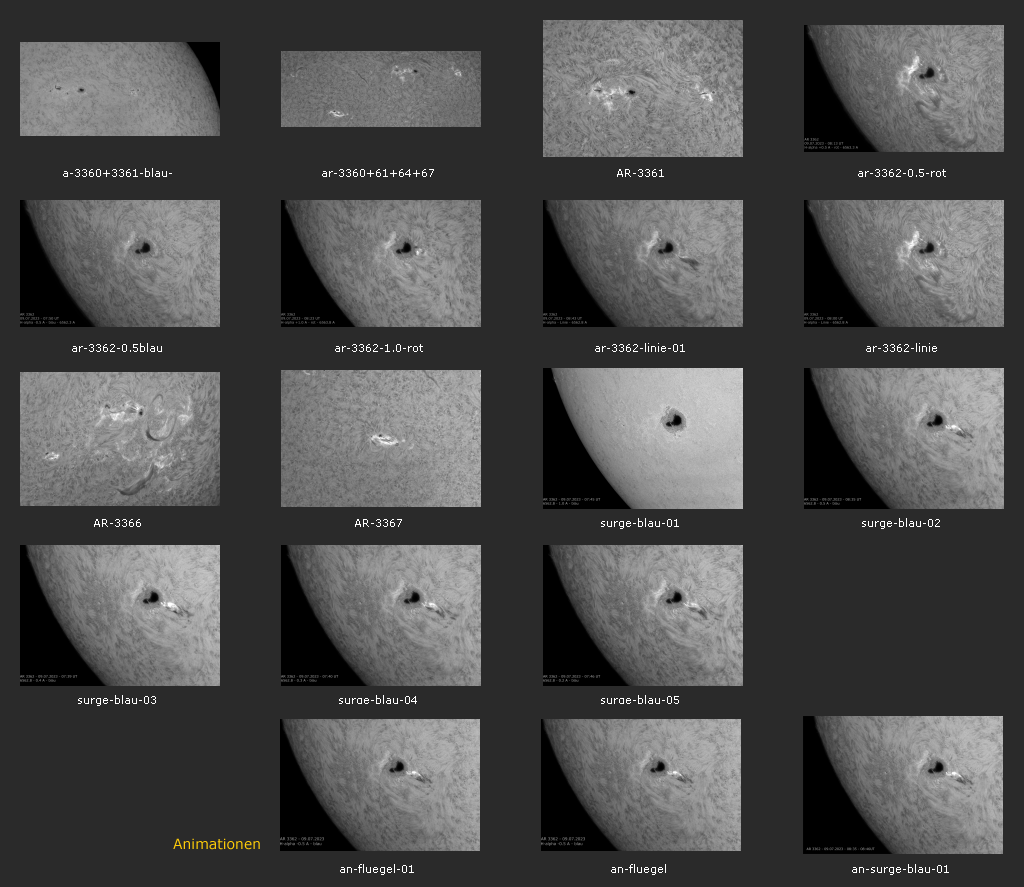 Sonnenbeobachtungen in drei engen Spektralbereichen "Best of" aus dem Jahr 2023 des 25. Sonnenzyklus |