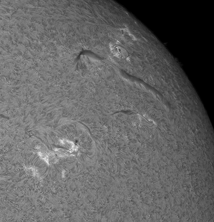 Die folgenden Webseiten zeigen Sonnenbilder des 25. Sonnenzyklus aus den Jahren 2023 und 2024. Die Bilder in der CaK-II Linie wurden mit einem 80/600 mm Refraktor und einem Lunt CaK Modul mit einer Halbwertsbreite von < 2.4 À aufgenommen. Die Weißlichtbilder wurden mit 90 mm Öffnung und einer Brennweite von etwa 1500 mm Brennweite mit einem unbeheizten DayStar H-alpha Filter aufgenommen. Die H-alpha Bilder entstanden dann bei einer Halbwertsbreite von ca. 0.5 À in der zentralen H-alpha Linie aufgenommen. Die Bezeichnung "blau" in den Filenamen sind Bilder, aufgenommen im blauen Flügel der H-alpha Linie beim Aufheizen des Filters. Aufnahmekamera war in allen Fällen eine ZWO ASI 290 MM. Die .avifiles bestehen aus jeweils 2000 Rohbildern, von denen 10% gestackt wurden. |